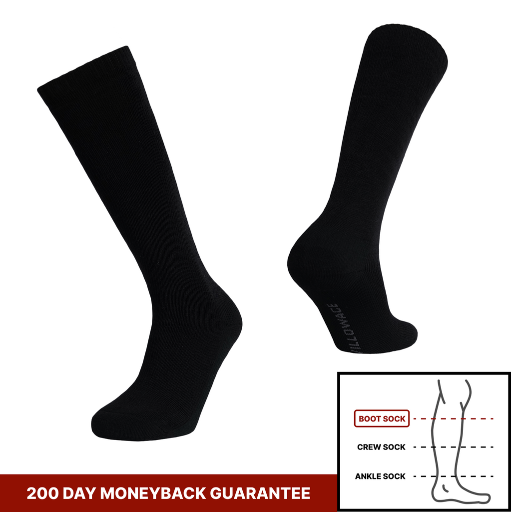 We know our socks will stand up to every challenge you throw at them. We generally don't cover lost/stolen socks, damage due to pets, or burnt/cut socks.